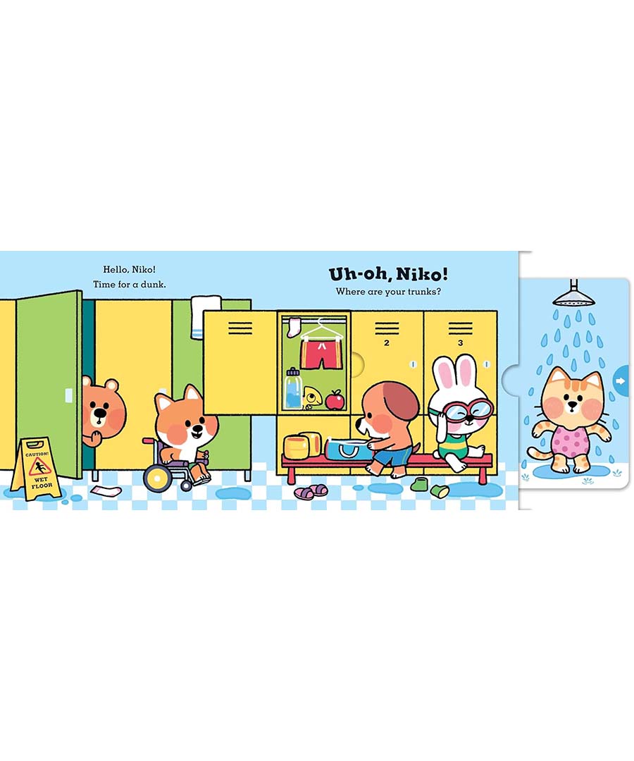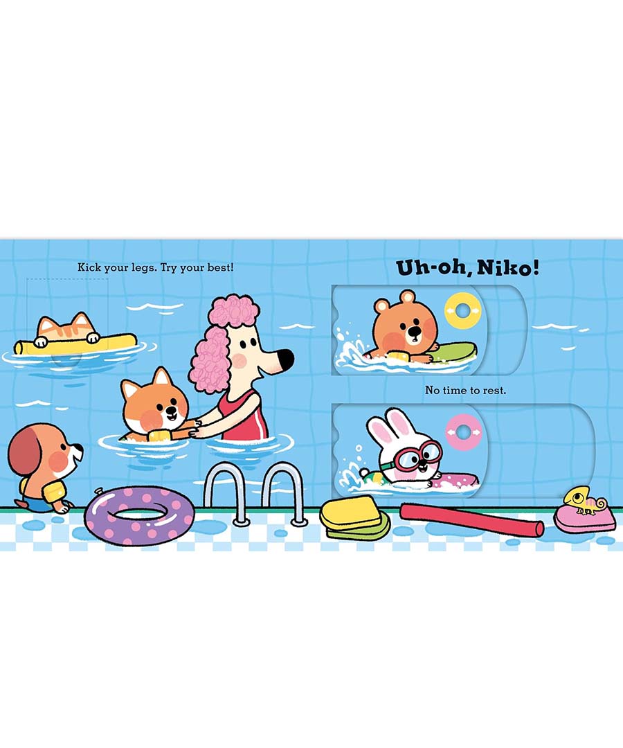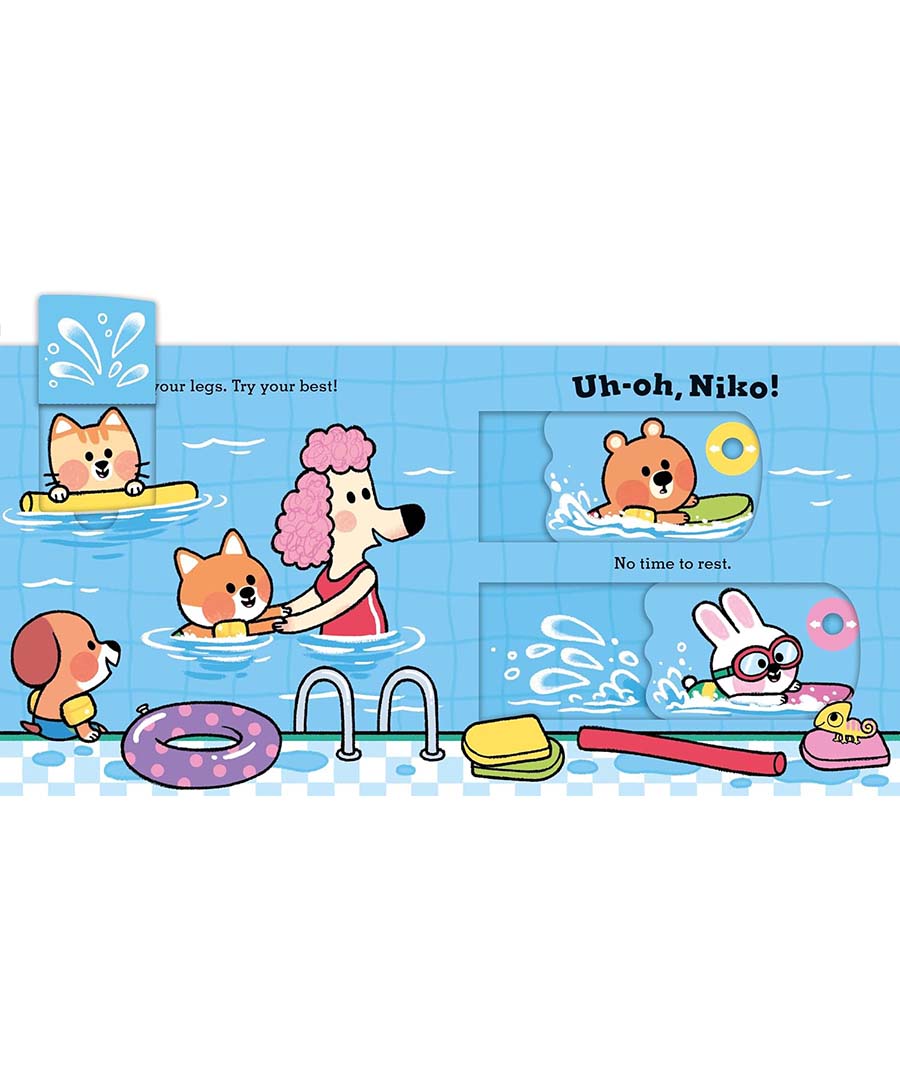 Help little Niko find his trunks, make a splash and race with friends in this sturdy, interactive board book, packed with push-and-pull sliders and flaps.