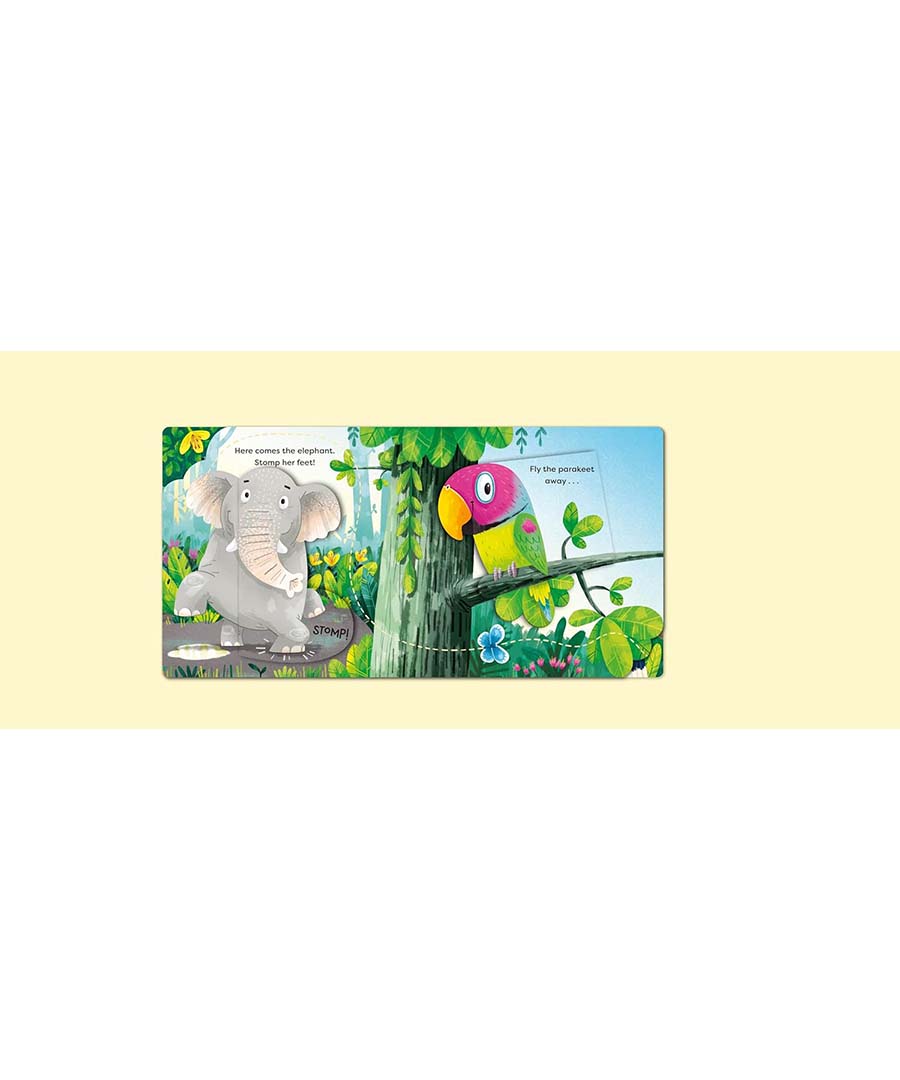 You can swing the gibbon through the treetops, stomp the elephant's feet and flap the parakeet's wings as you flip the flaps to bring the jungle to life.