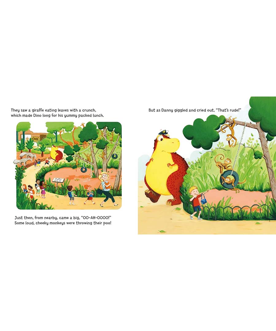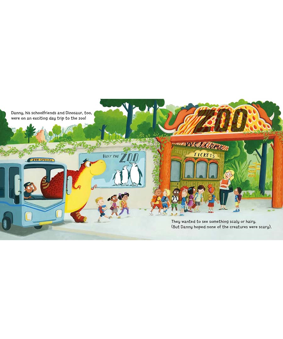 Danny and Dino are enjoying a school trip to the zoo... until a cheeky monkey steals their packed lunch! They chase the monkey past parrots, zebras and rhinos, but soon get stuck in an enclosure with some VERY hungry lions! Can Dino's quick thinking and rumbly tummy save the day?