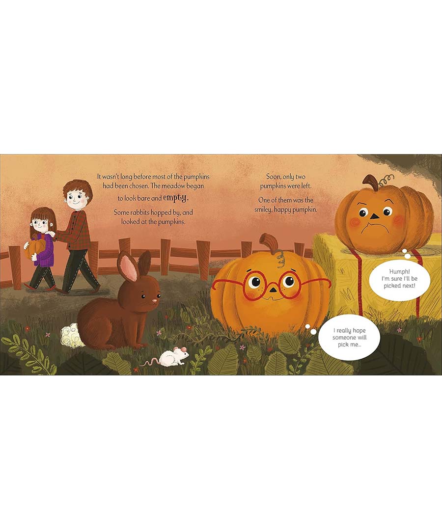 Halloween is approaching and it's time for the kids to pick out their pumpkins. Everyone is being chosen and there is one pumpkin who feels left out. He is the smiliest and happiest pumpkin of them all, but of course nobody wants a happy pumpkin on the scariest, spookiest night of the year!