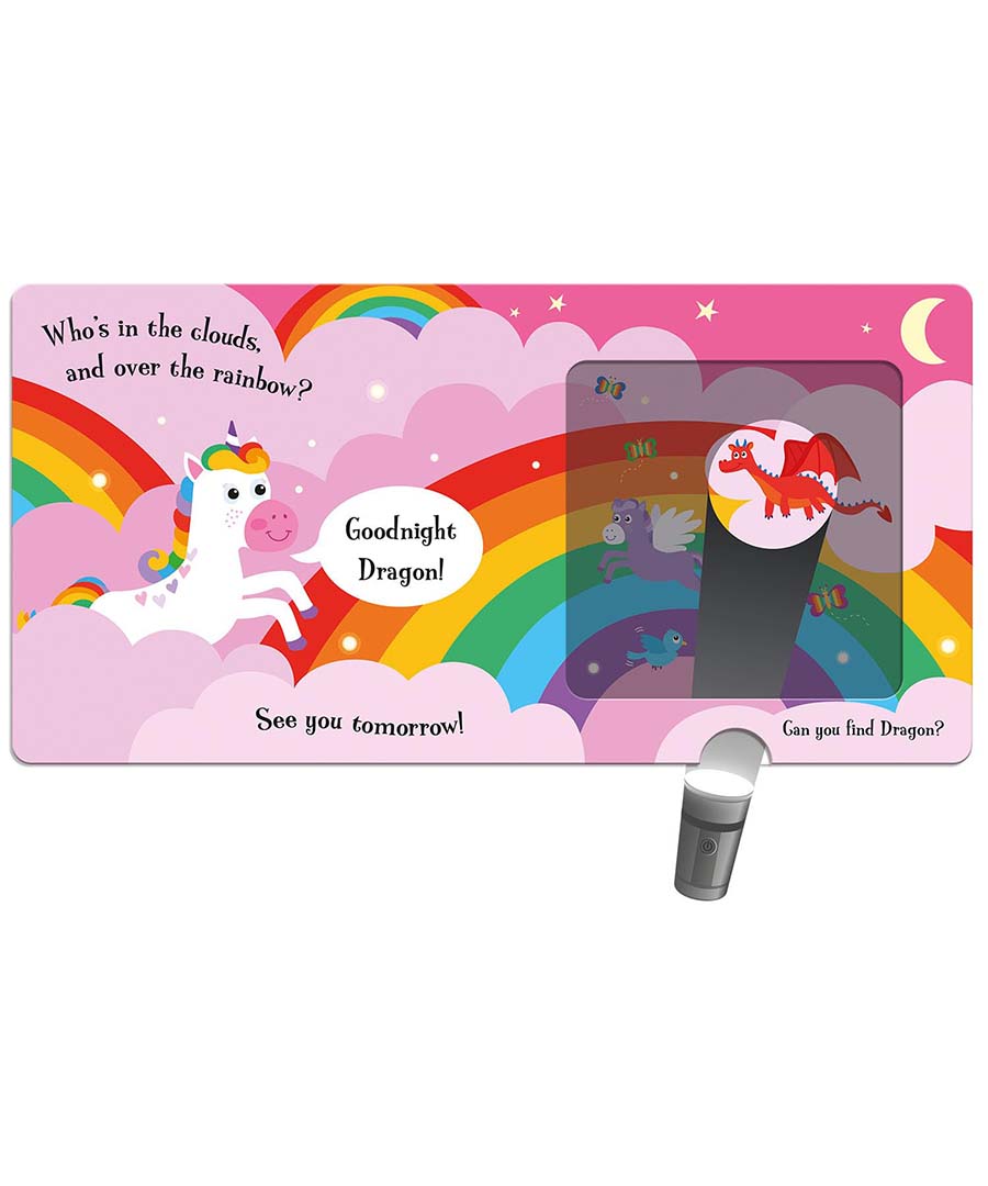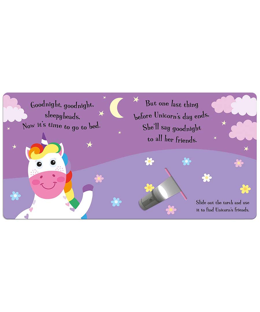 Unicorn is ready for bed, but first she wants to say goodnight to all her friends. Insert the magic torch between the pages to find Unicorn's magical friends in each night-time scene and watch children glow with delight!