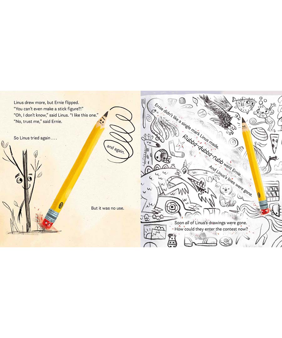 Linus and his eraser, Ernie, don't always see eye to eye. But with the family art show drawing near, these two will have to sharpen their collaboration to make something neither one could do on their own!