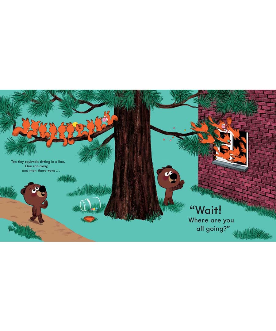 WAIT! Where are you all going?! Join one bear on a hilarious quest to track down 10 mischievous squirrels... with a little help from 9 budgies, 8 geese, 7 polar bears, 6 chameleons, 5 mice, 4 ducks, 3 tortoises, 2 budgies... Hang on, I thought there were 9 budgies, not 2?! And let's not forget the tiger...