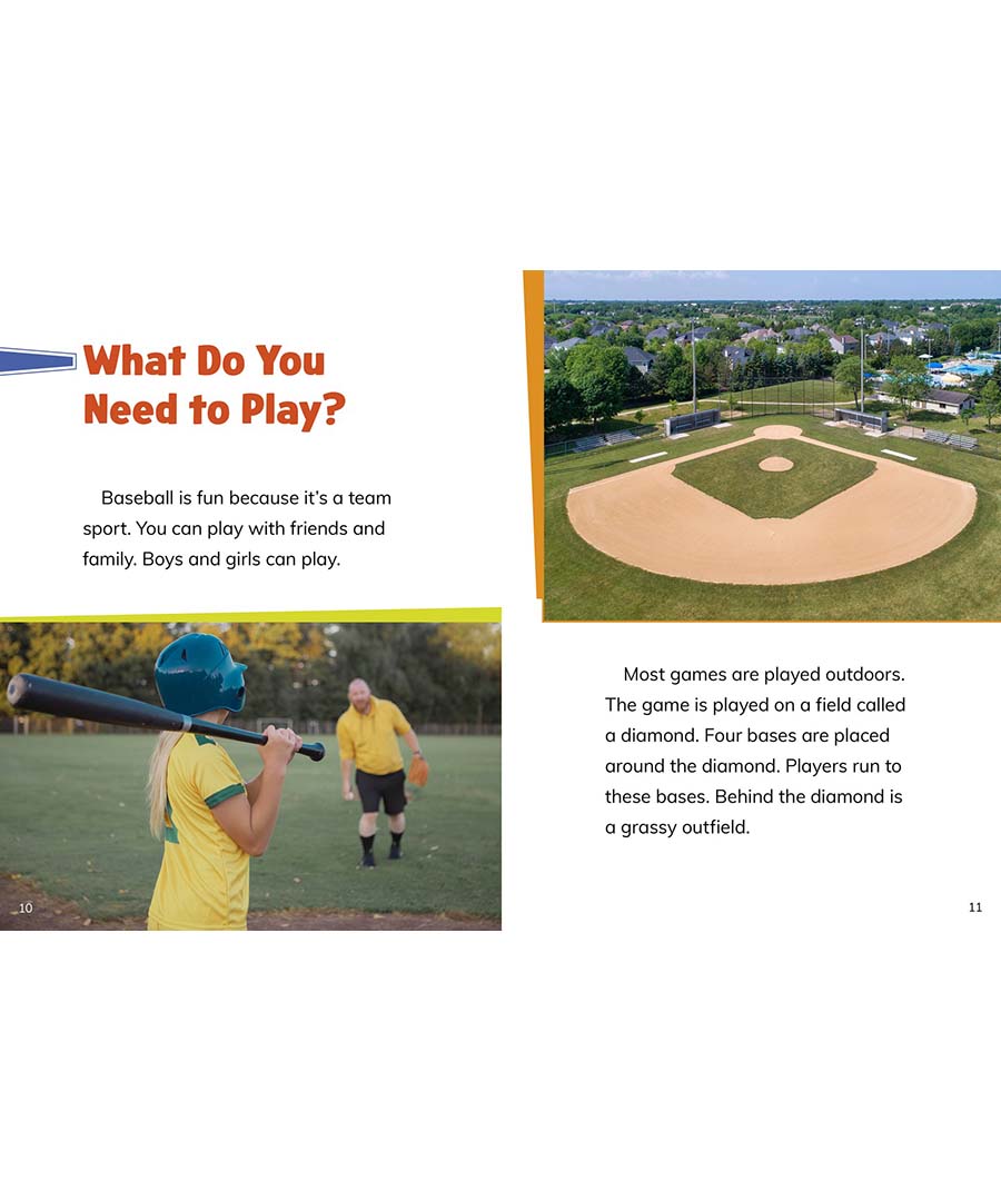 Eating a hot dog at the ballpark is fun. Watching a favorite star make a great catch is too. Whether playing it or watching it on TV, learning about the game’s rules, positions, skills, pro stars, and more will show readers just why baseball is the best! A fun quiz at the end of the book reinforces learning.
