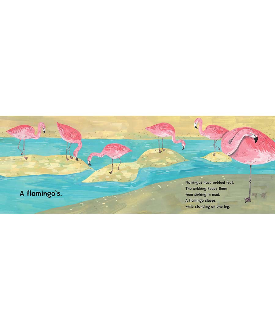 Written by a mammalogist at the Smithsonian, this clever preschool page-turner pairs seven tracks with information about the animals' locomotion, asking kids to guess which animal left which tracks behind. Whose Footprint Is That? reveals the animals--ranging from flamingos to kangaroos--in their own habitats.