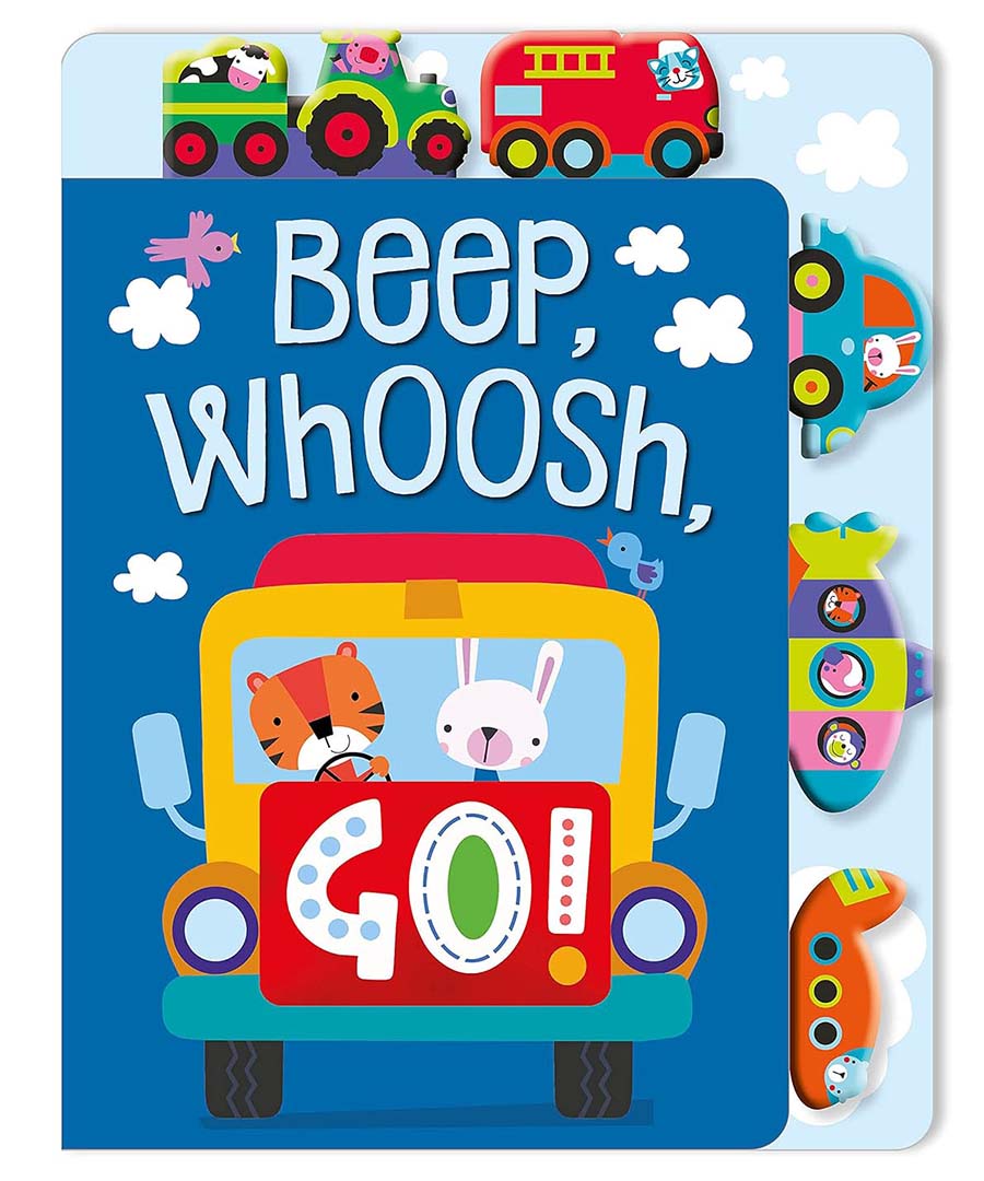 Explore with your baby the noisy world of vehicles, with soft PVC vehicle tabs which are easy for a baby or toddler to turn.