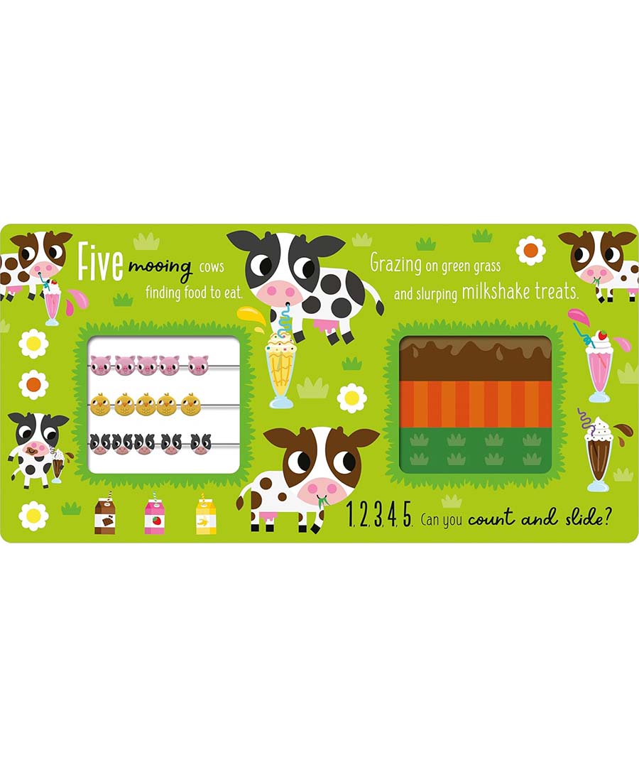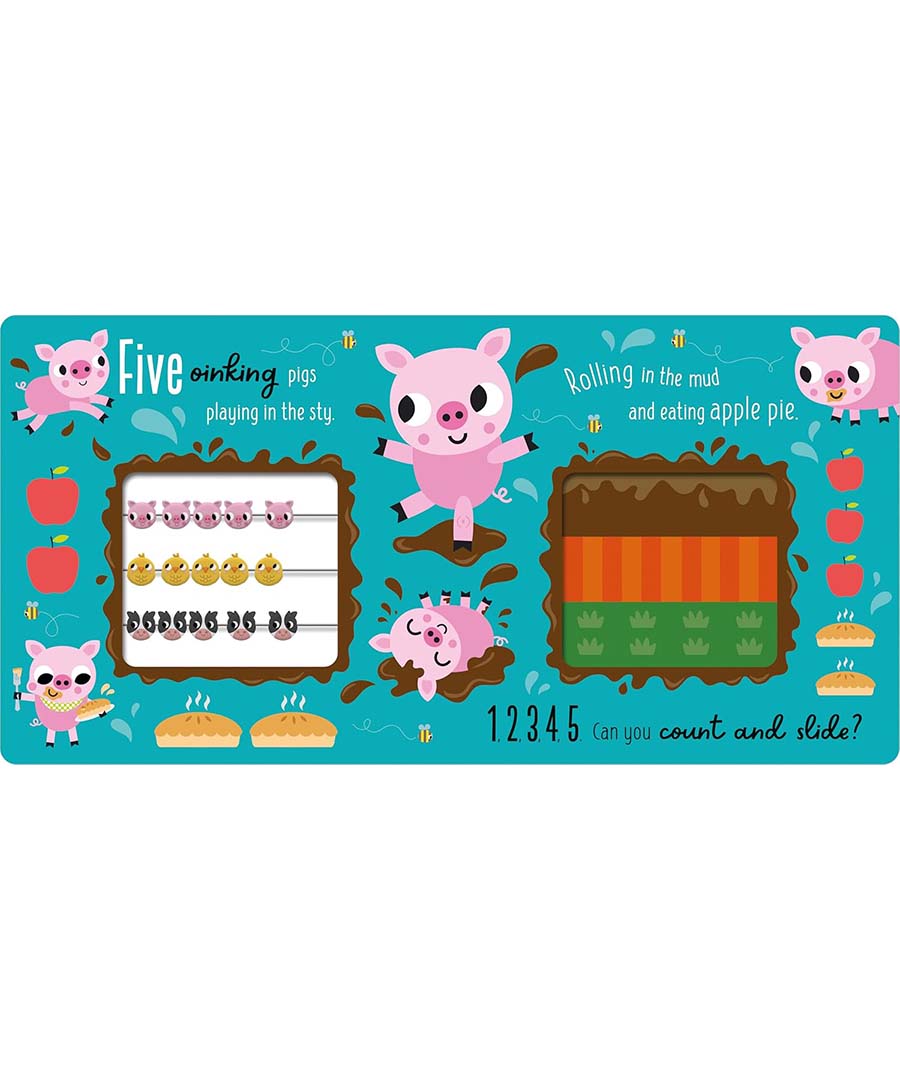 Meet the funny farmyard friends in this cute and innovative counting book. Follow the sweet rhyme and count the adorable animals from one to five as you slide them along the abacus.