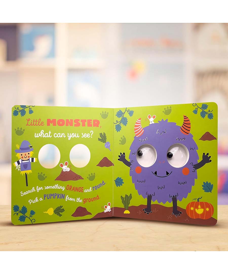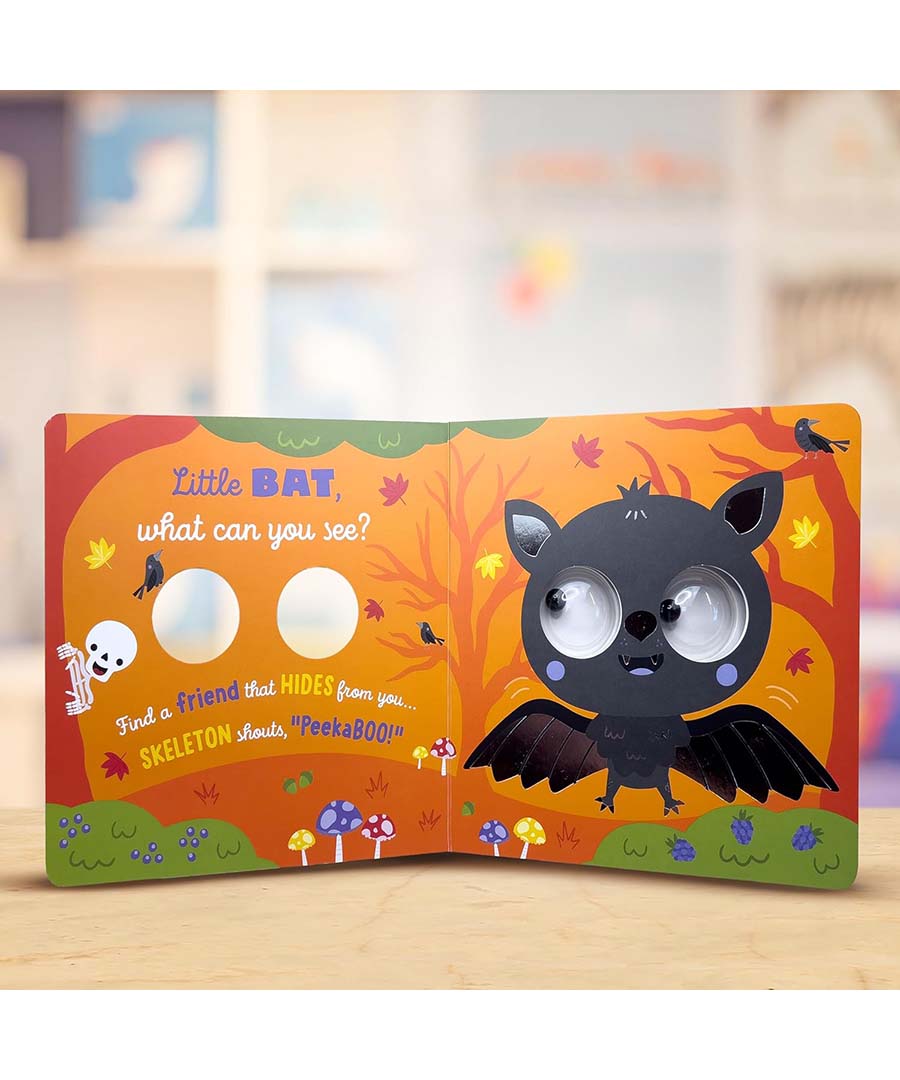 Join the Halloween crew on a search-and-find adventure! Move the giant googly eyes up, down, and all around as you help them look for fearsome friends and spooky objects on every page. With fun interactive rhymes, foiled illustrations, and large domed googly eyes throughout, little ones won’t be able to take their eyes off each page!
