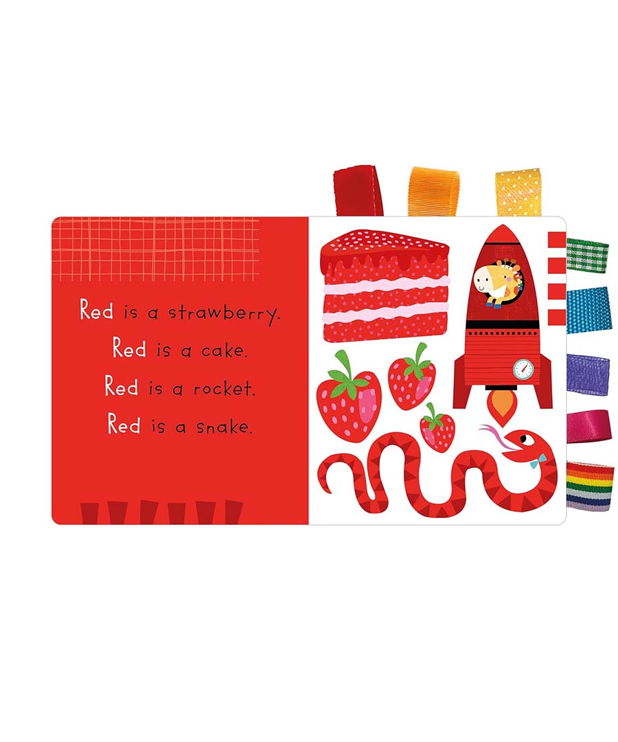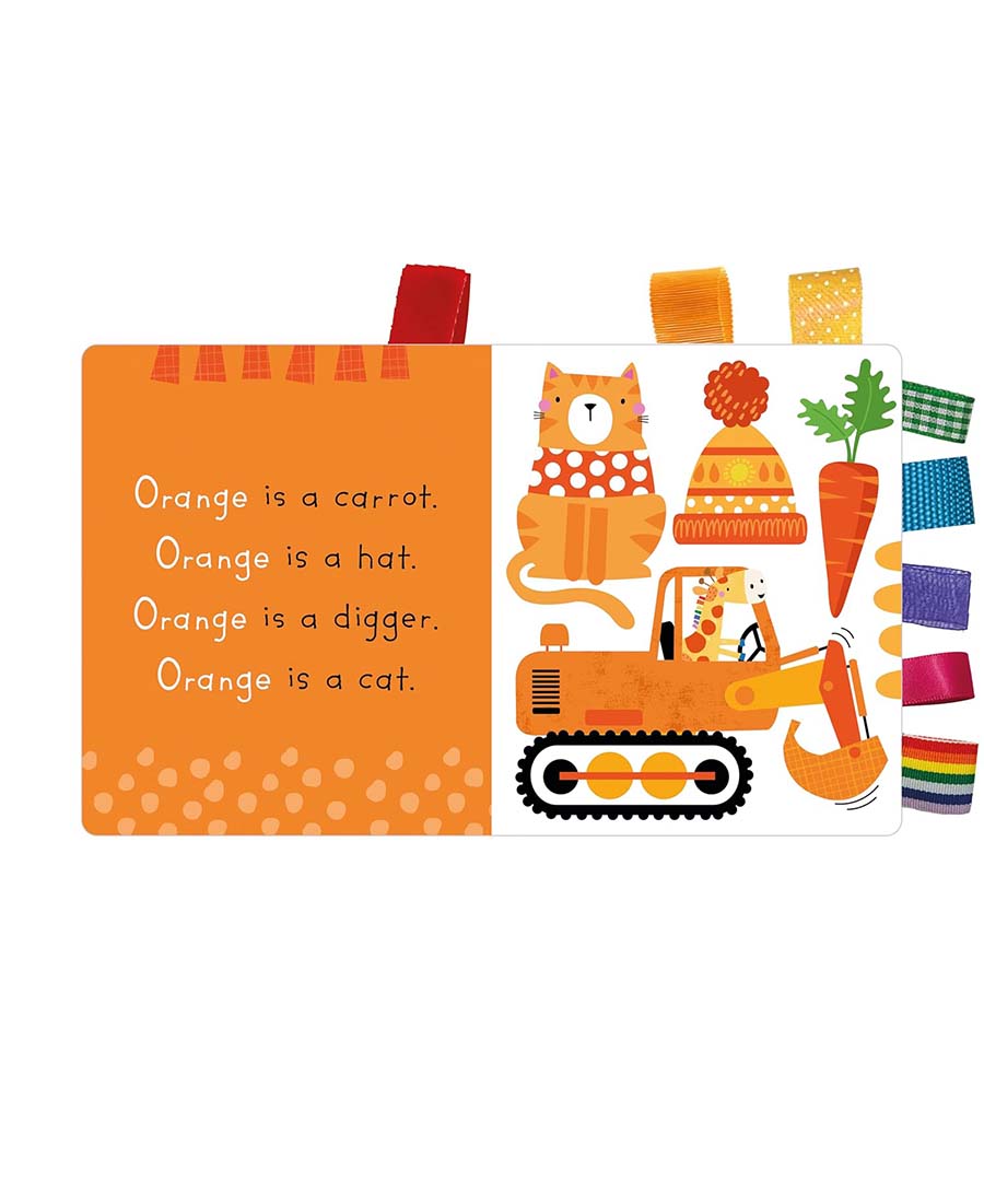 Discover the colors of the rainbow in this engaging board book.This tactile addition to our Sensory Snuggables range uses simple rhymes, colorful ribbon tabs, and playful illustrations to introduce first colors.