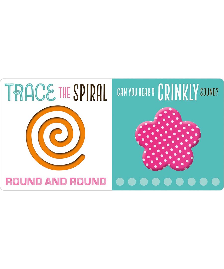 From rattles and mirrors to flocking and fur, this sensory board book plays with three key senses: sight, touch, and sound.