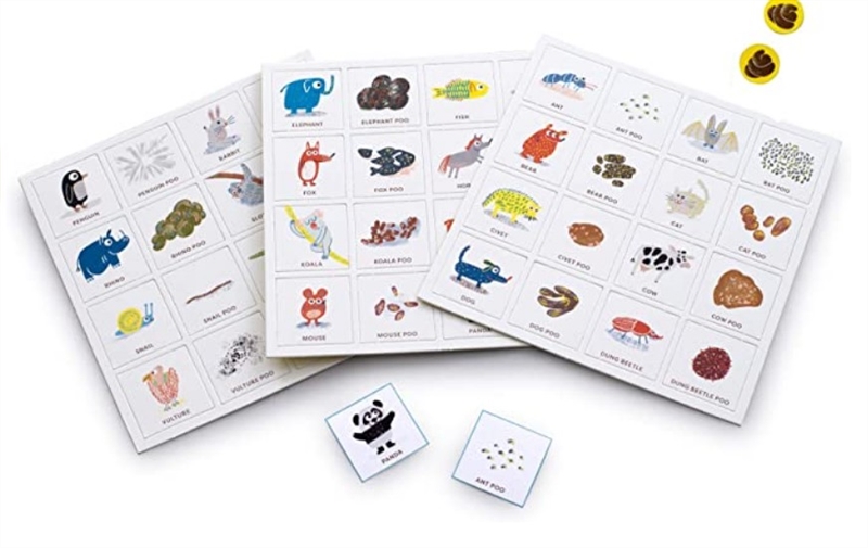 Poo Bingo Discover all you ever wanted to know about poo - and more - with Poo Bingo! Featuring 24 animals and their uniquely shaped poos, this is the bingo game to end all bingo games. Kids will delight in discovering that wombats poo in cubes and that penguins poo in squirts that are different colours depending on what they've eaten! Be the first to fill your game card with animals and poos to win BINGO!