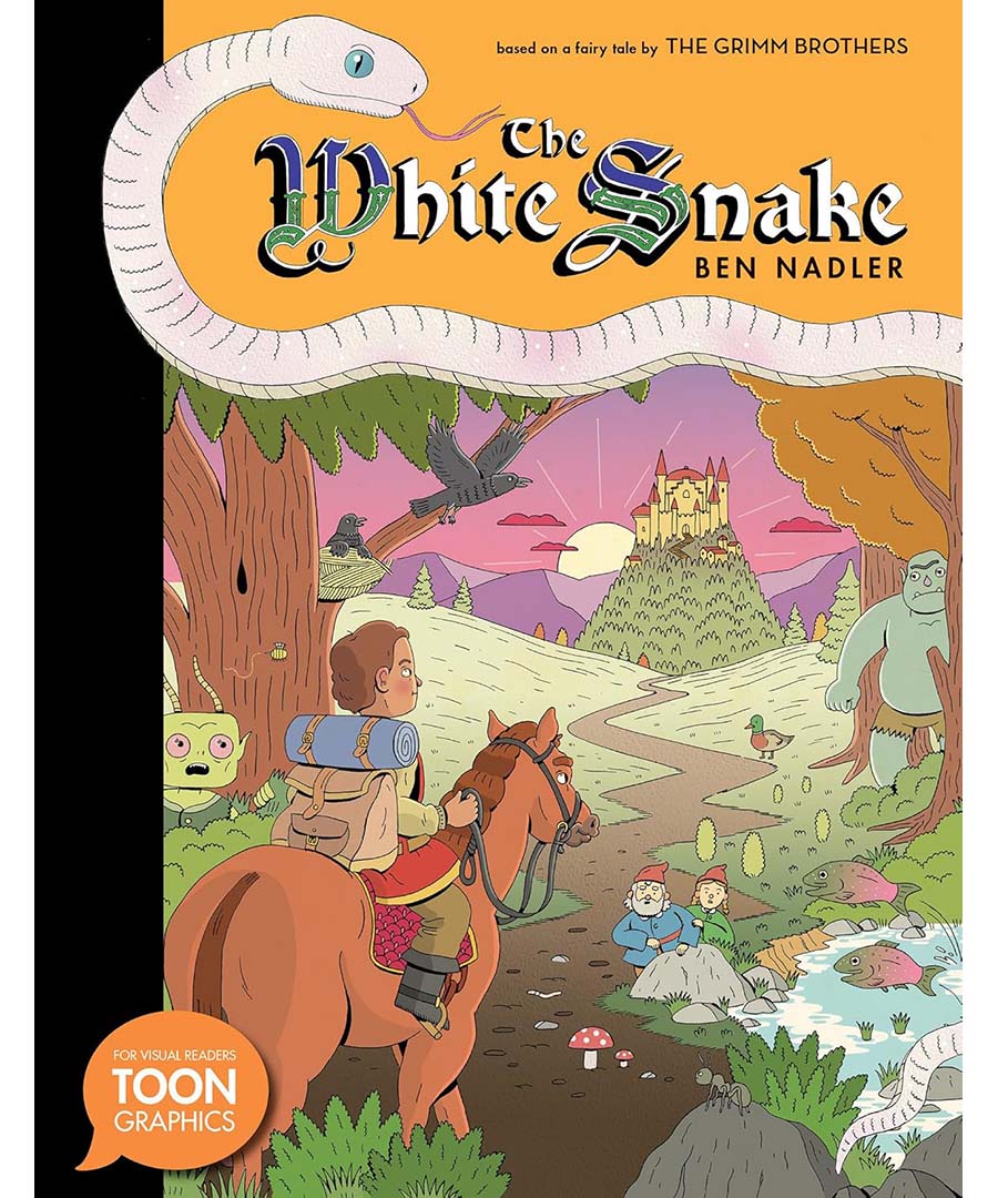 Young Randall dreams of adventures until one day he’s sent off on a mission to discover the neighboring king’s secret. When he returns, he’s thrown in a dungeon and despairs until Princess Tilda — the power behind the throne – entices him to compete for her hand. Courage, determination — and Tilda’s trust in him – toss him from one adventure to the next as he dives for a ring at the bottom of the ocean and searches for a Golden Apple from the Tree of Life. BEN NADLER’s modern version in comics highlights the timeless truth at the heart of this Grimm Brothers’ fairy tale in a way that is sure to delight and resonate with today’s young readers.
