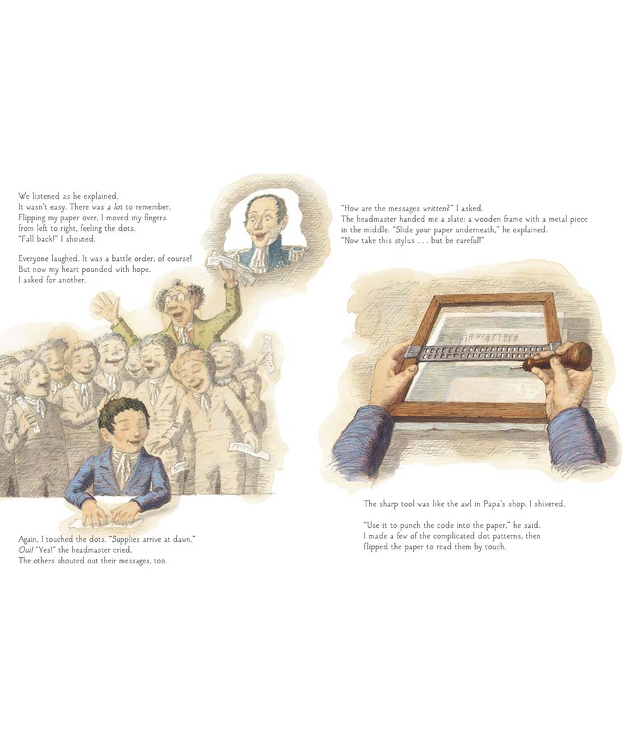 And so he invented his own alphabet—a whole new system for writing that could be read by touch. A system so ingenious that it is still used by the blind community today.