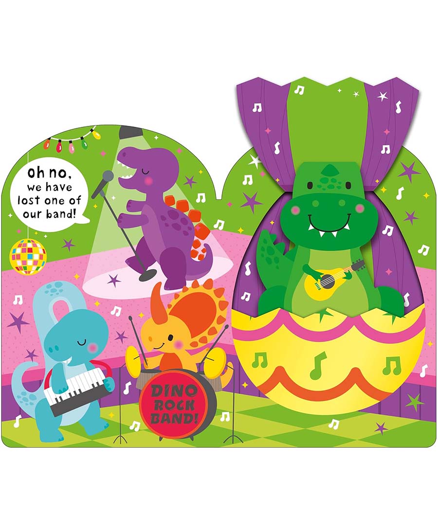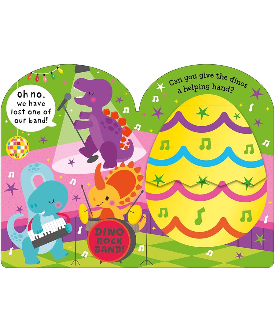 Young children can turn the pages of this shaped board book and delight in the colorful scenes on every spread. As they open each Easter egg, they'll love to discover the silly surprises that pop up. Find a lead guitarist dinosaur that needs to rejoin his rock band, a puppy who is missing from his synchronised swim team, and a unicorn that's surfing on a rainbow.