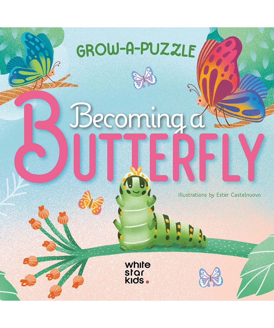 This interactive jigsaw puzzle book introduces young children to the lifecycle of a butterfly through storytelling and play. Using simple text and playful illustrations, little ones will follow a caterpillar as it hatches, munches, forms a cocoon, and finally emerges as a vibrant butterfly. With sturdy pieces designed for little hands, children will learn to assemble the stages of growth in the correct order, helping to develop their logical thinking, motor skills, and cognitive abilities—all while having fun! The fully illustrated pages ensure the story remains engaging even if the pieces are not yet in place. A perfect combination of reading and hands-on activity, this book sparks curiosity and early learning through play!