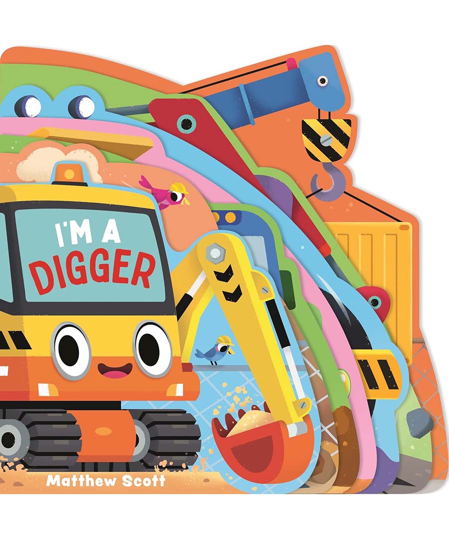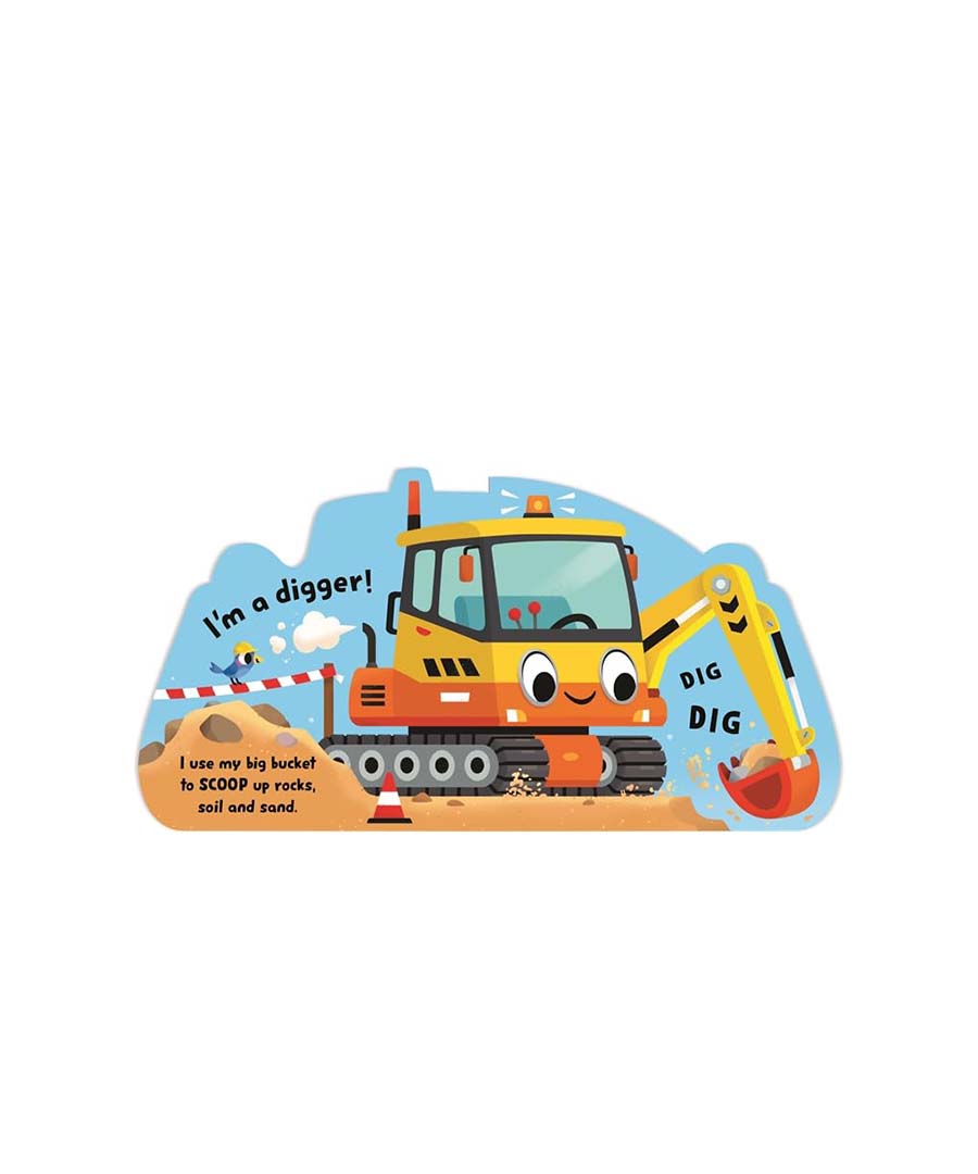 Discover all your favourite construction vehicles in this adorable shaped board book.
