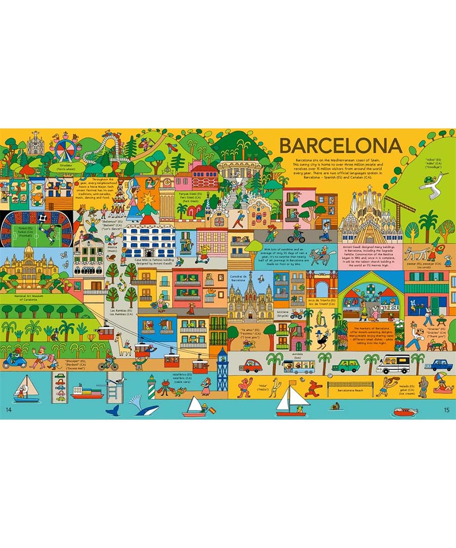 The incredibly detailed illustrations will take you right to the heart of some of the world's most exciting and magical cities. Learn how to say new words and phrases in different languages, whilst also discovering new foods and spotting historical landmarks along the way.