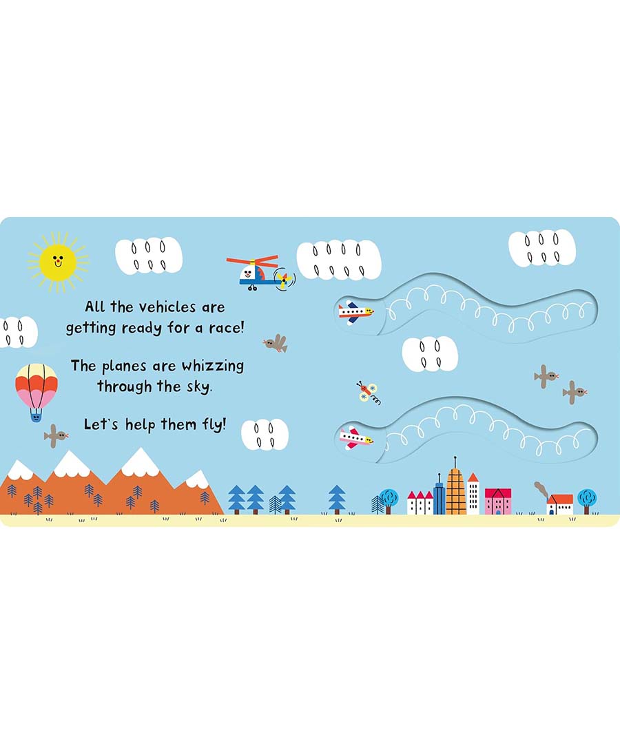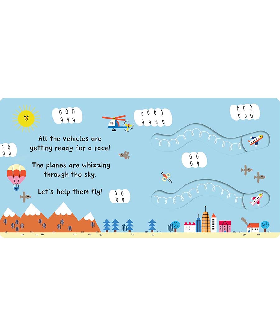 Zoom along with all the cars, trains and planes and help them get ready for the race. Who will win this time?