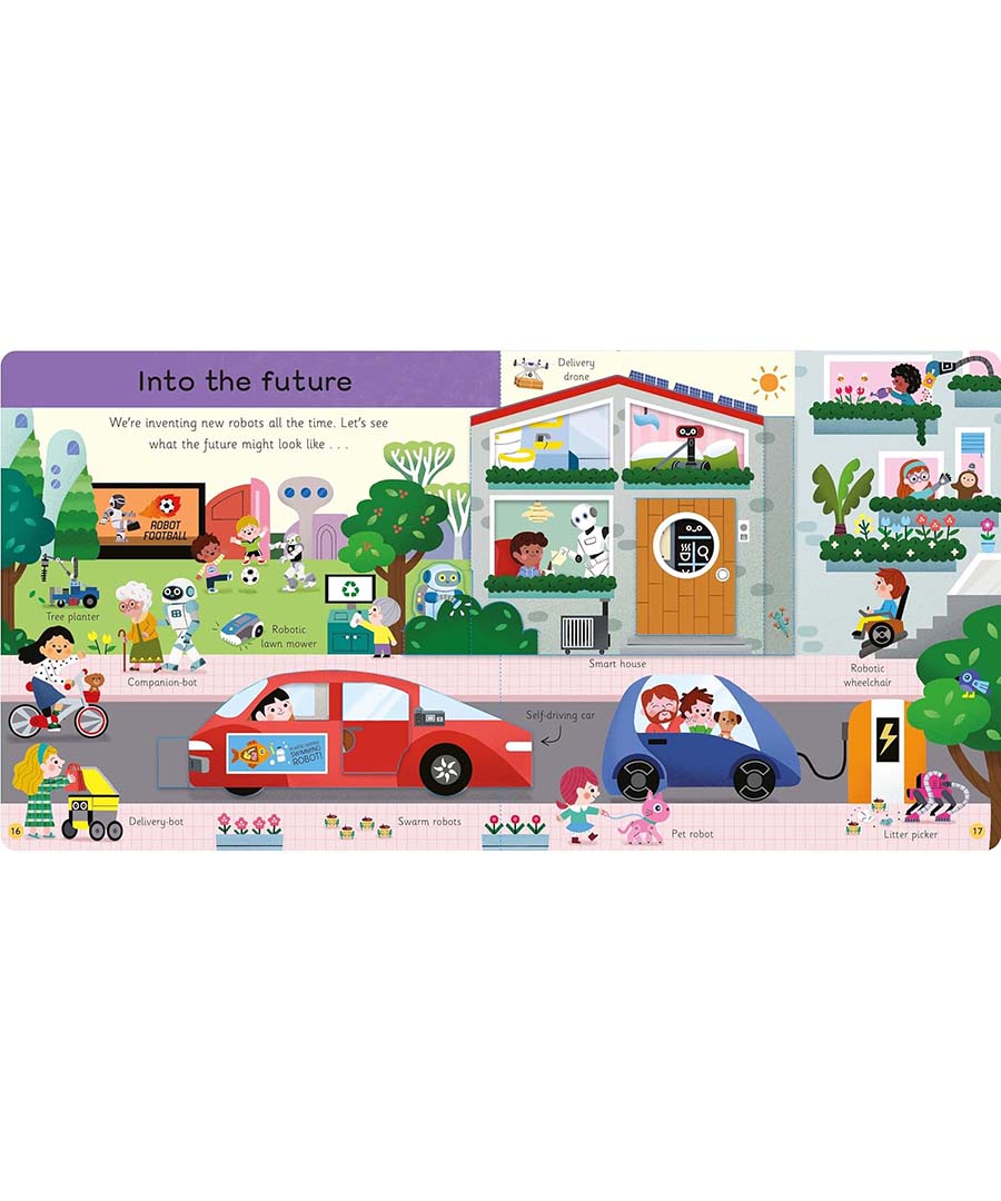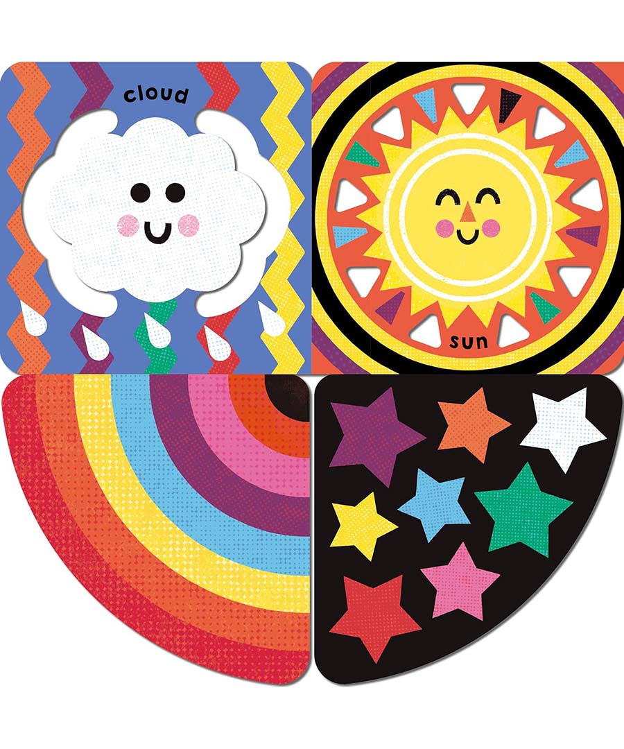 - Peep-through holes and fold-down flaps encourage babies to lift their heads and reach towards the book