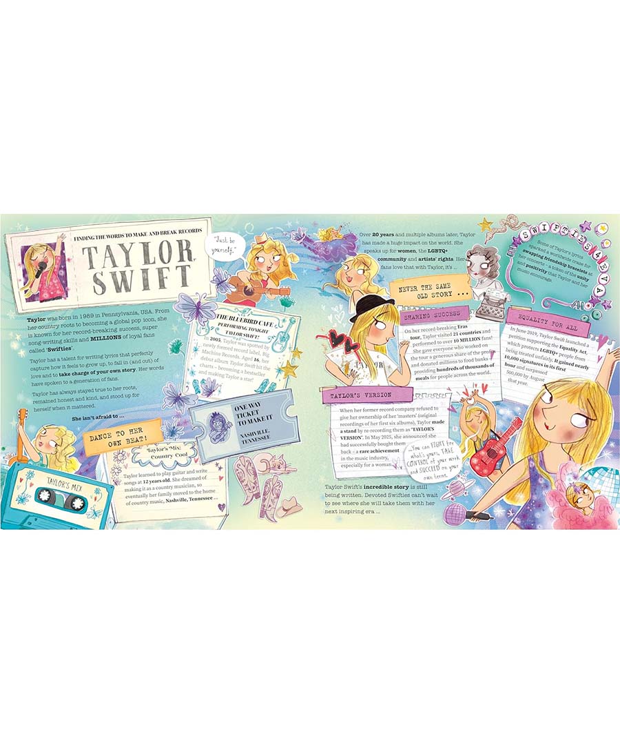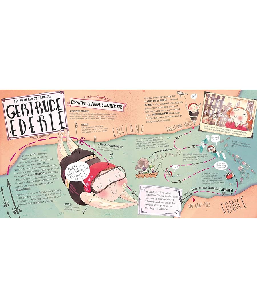 Including: Mary Anning, Jane Austen, Coco Chanel, Marie Curie, Amelia Earhart, Gertrude Ederle, Agent Fifi, Anne Frank, Frida Kahlo, Emmeline Pankhurst, Rosa Parks, Sacagawea, Mary Seacole, Taylor Swift and Malala Yousafzai.