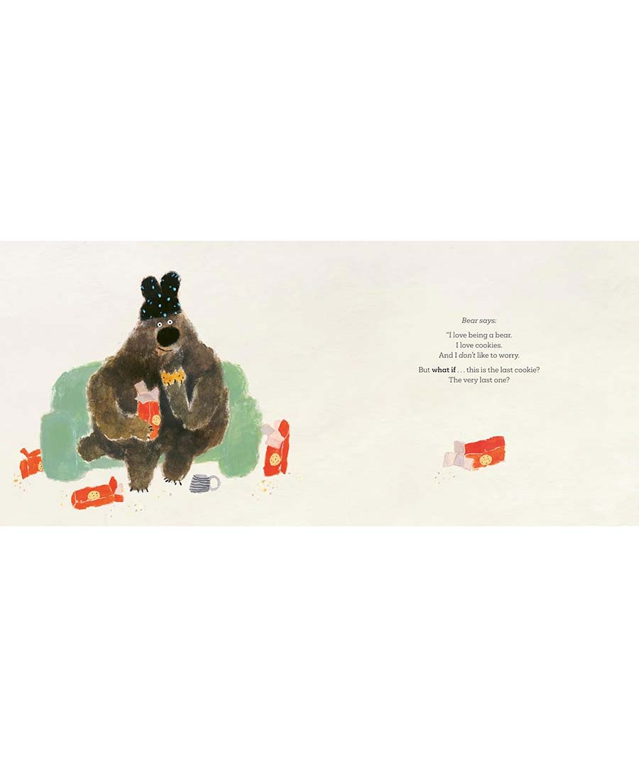 But just when Bear thinks his worst fears have been realised, Duck gently shows him that worries don’t have to end in disaster. By sharing his cookie and reminding Bear that ‘what ifs’ can lead to happy endings too, Duck helps his friend see that things often turn out better than expected.