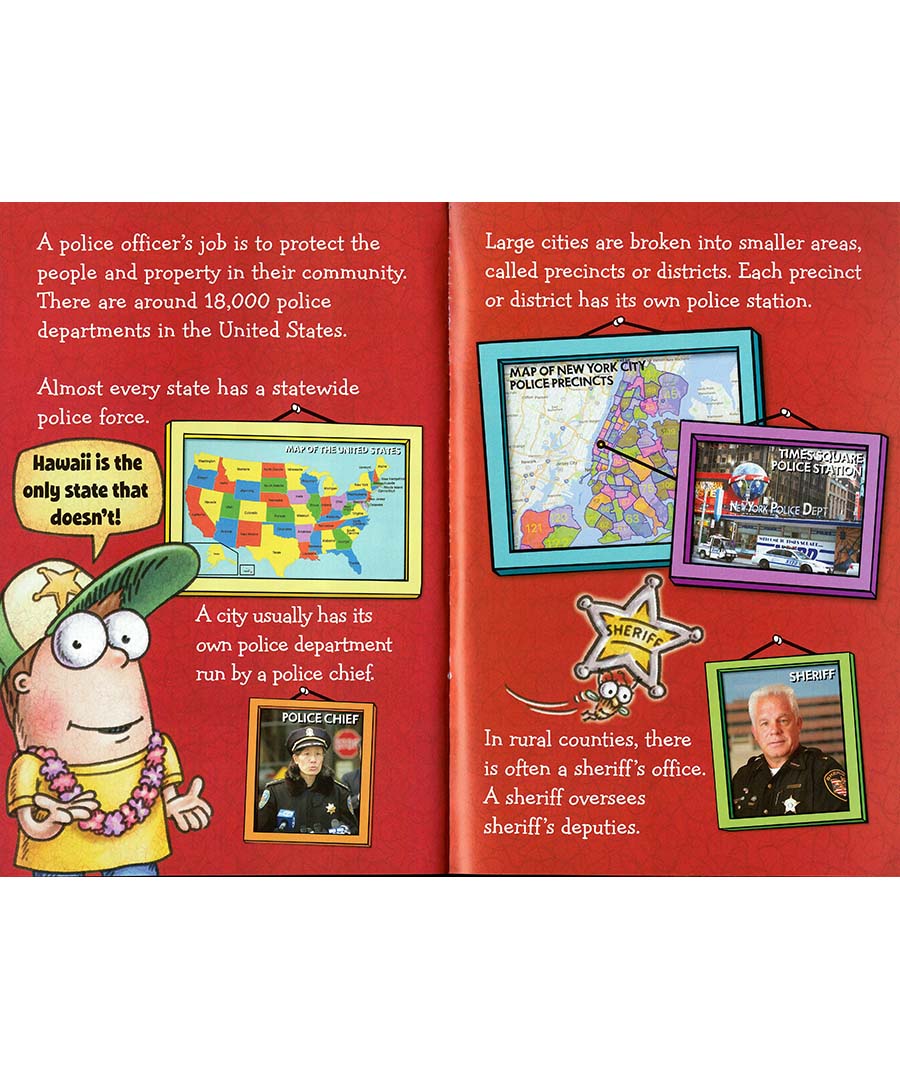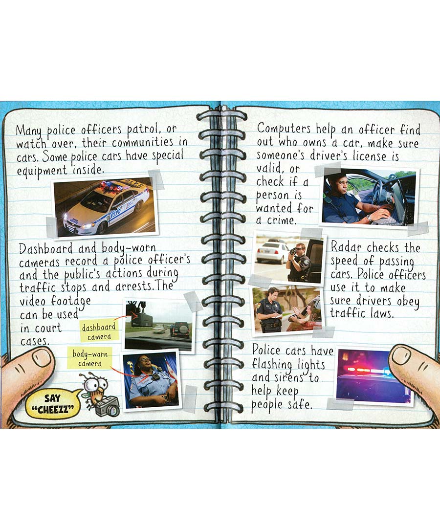Fly Guy and Buzz are visiting a police station on their latest field trip. They will learn all about police officers: job duties and responsibilities, police dogs, uniforms, police cars, community policing, police stations, police chiefs, police academies, detectives, and even how and when to use 9-1-1. There's so much to learn about these important community helpers! Award-winning author-illustrator Tedd Arnold brings nonfiction to life for beginning readers. There are humorous illustrations and engaging photographs throughout. The front cover features eye-catching holographic foil!