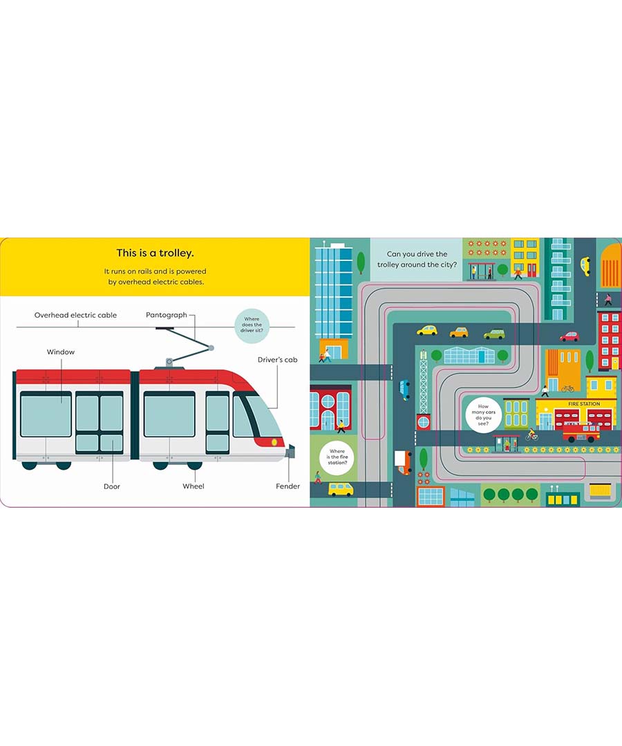 Jump in the driver's seat and head to the city in this first non-fiction book for toddlers.