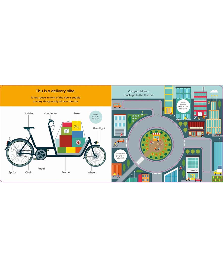 With five counters to push along five busy city tracks, this is the perfect book for vehicle obsessed toddlers everywhere. They will love driving a bus, a tram, a bike and a ferry through the city, delivering books and taking passengers from place to place.