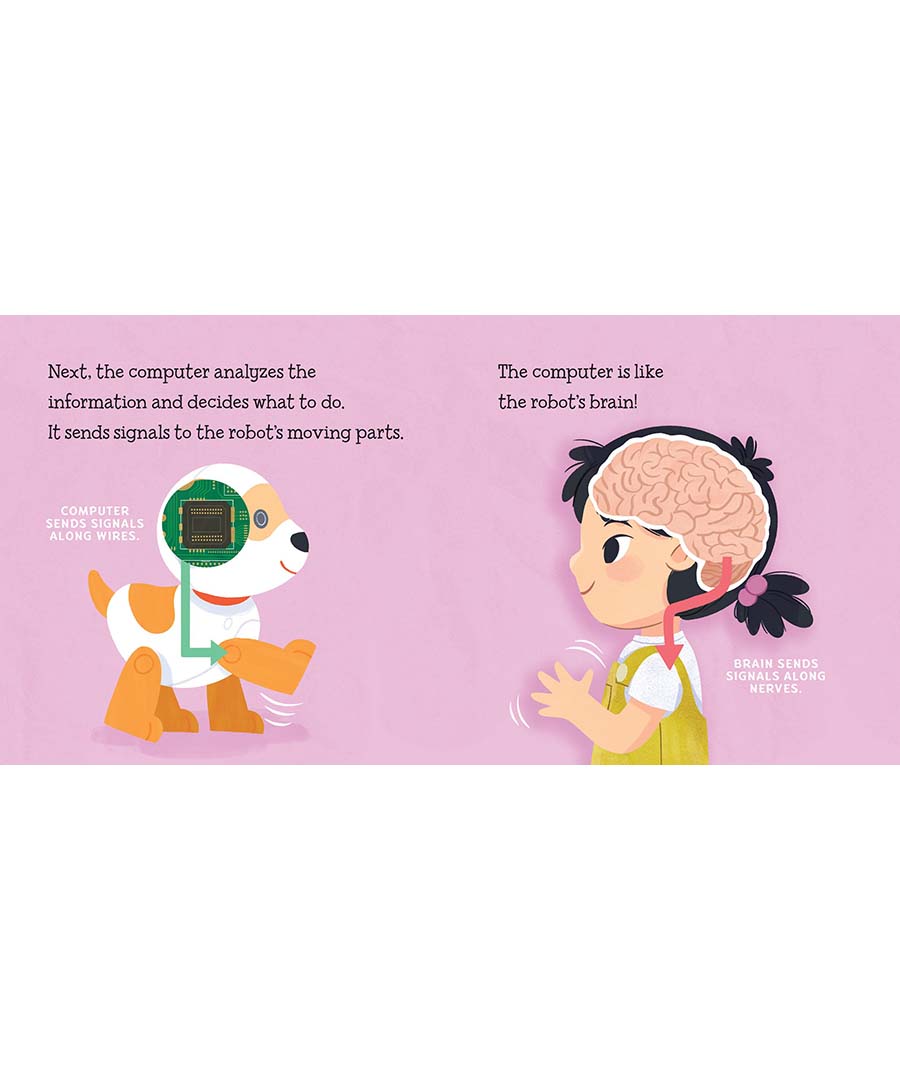 Baby has a robot dog! It can walk, bark, and do tricks. What makes a robot a robot? How does a robot work? Find out in this clever board book that's accurate enough to satisfy an expert yet simple enough for baby.