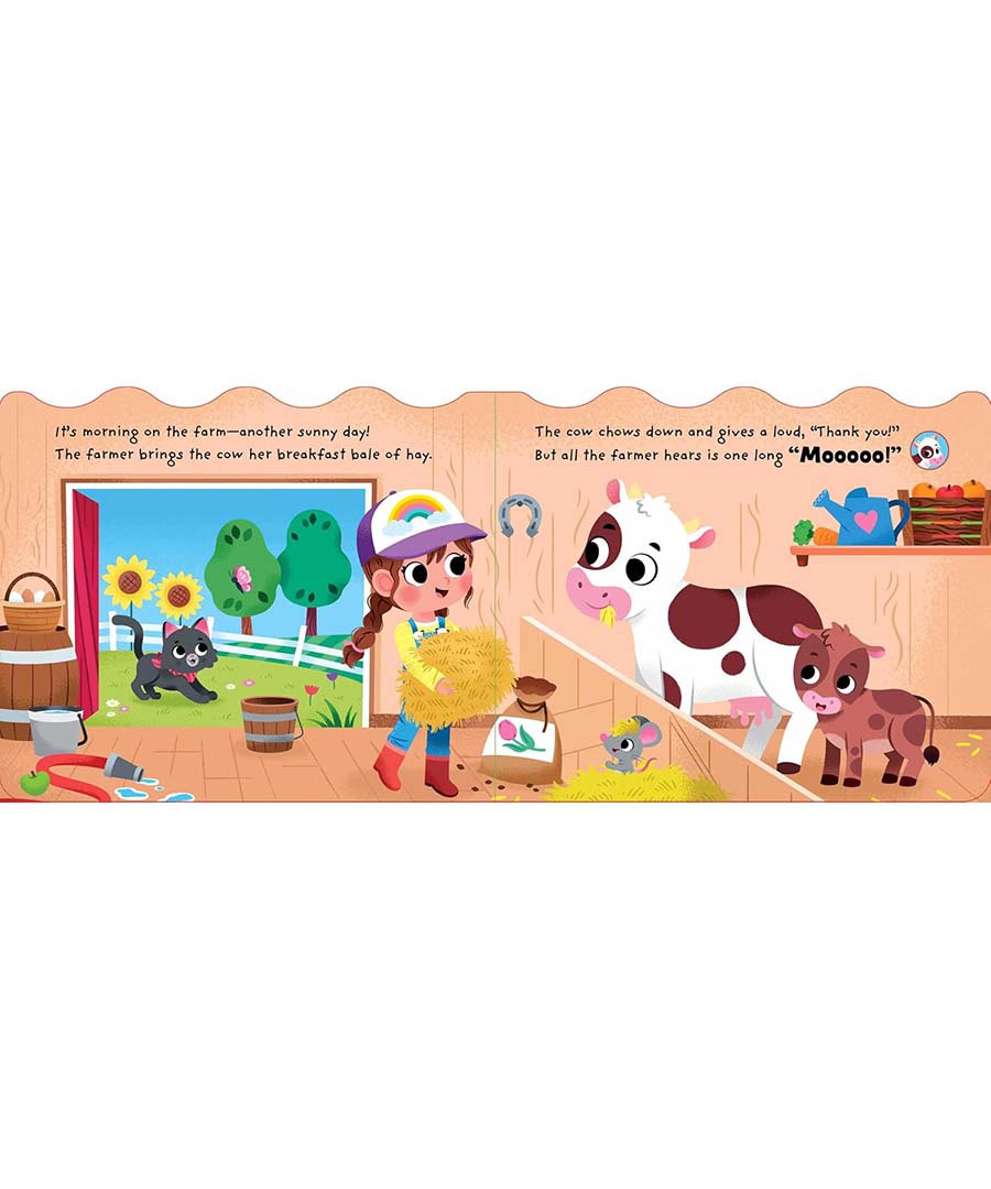 Grab this 6-button sound book with a convenient handle for farm-tastic fun on the go! With animals sounds and a fun tune, this book is sure to delight.