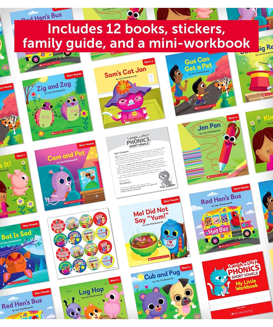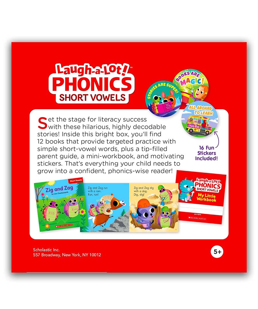 Give children the tools they need to soar as readers with this irresistible set of highly decodable stories! Inside the bright box, you’ll find 12 funny books that provide targeted practice with simple, short-vowel words plus a tip-filled parent guide, mini-workbook, and motivating stickers. That’s everything a child needs to grow into a confident, fluent, joyful reader.